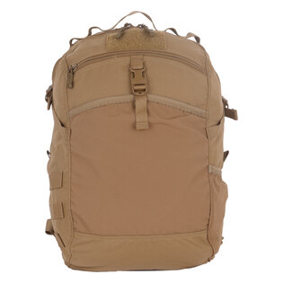 Na přední straně je otevřená horní kapsa zajištěná přezkou ITW-Nexus IR. Batoh je vybaven popruhem PALS na levé a otevřená kapsa na láhev na pravé straně.