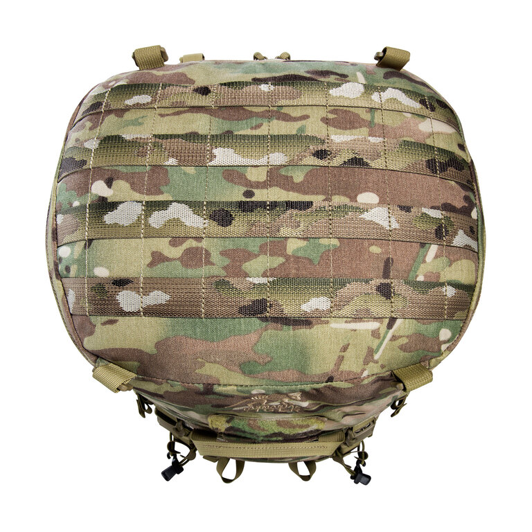 MOLLE vazba na přední a boční straně i na víku batohu umožňuje snadné připojení další výstroje. Batoh je kompatibilní s hydratačním vakem a obsahuje průchody pro vedení antény do hlavního prostoru. Odolné materiály s DWR úpravou bez PFC/PFAS pomáhají chránit obsah před vlhkostí a nečistotami, zatímco Multicam usnadňuje začlenění do prostředí.