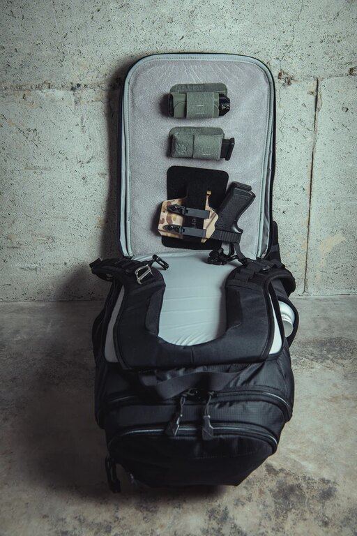Samostatná komora pro skryté nošení zbraně s integrovaným systémem BAP drží výbavu bezpečně na místě a umožní rychlé otevření podle zvolené konfigurace. Táhla zipů lze přesunout a nastavit si způsob otevírání podle potřeby. Uvnitř nechybí rukáv pro balistický panel ani skrytá kapsa na dokumenty či citlivé vybavení. Horní průchody usnadní vedení hadičky hydratace nebo kabeláže.