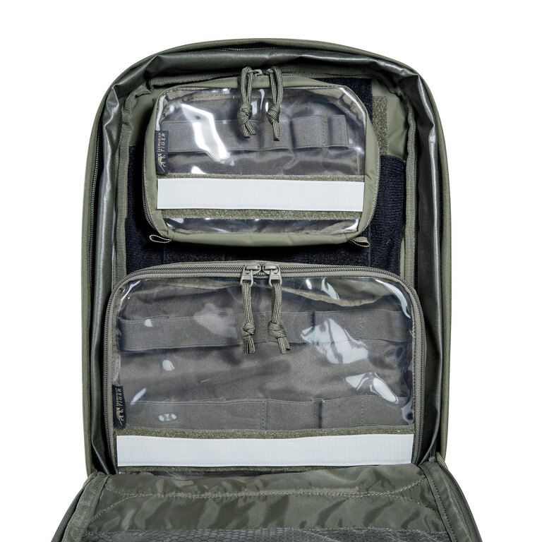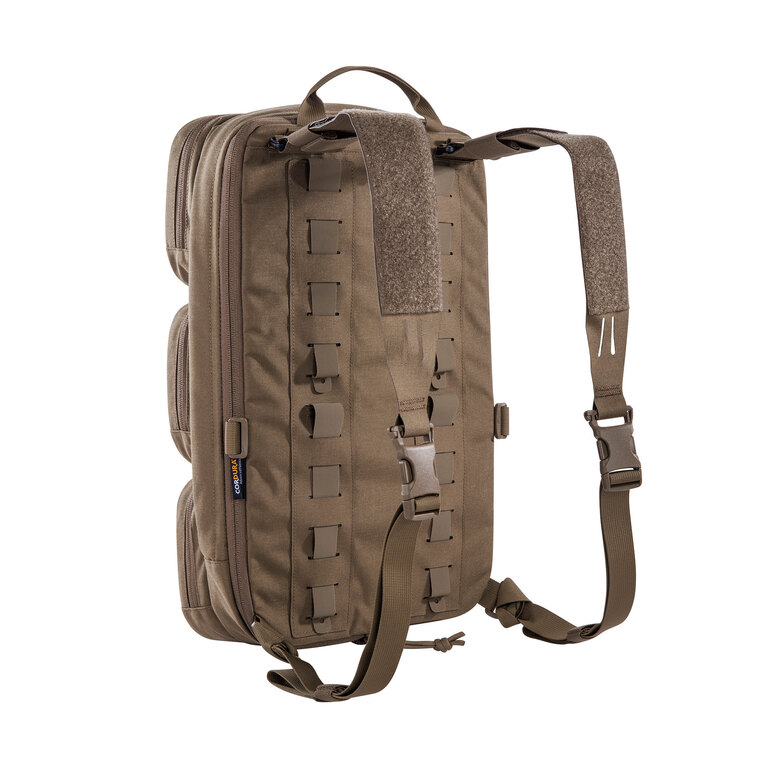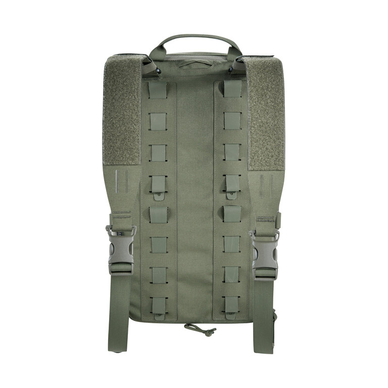Batoh funguje jako doplněk k chest rigu nebo nosiči plátů, na který se přímo připojuje. Nabízí hlavní přihrádku, tři přední kapsy a přihrádku na balistický plát. Díky tomu zachovává osvědčené rozložení výbavy a přidává další úložný prostor bez nutnosti měnit základní setup.