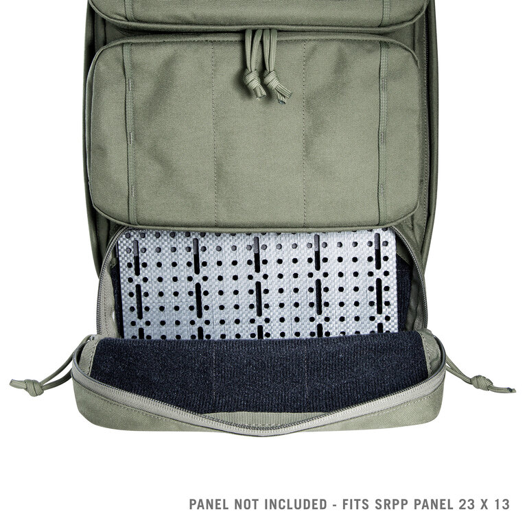 Vnitřní prostor umožňuje vložení balistického plátu. Batoh tak neplní jen úložnou funkci, ale zároveň umožňuje rozšířit ochranu zad podle potřeby. Uživatel si může přizpůsobit konfiguraci podle situace – od lehkého setupu až po variantu s ochranou.