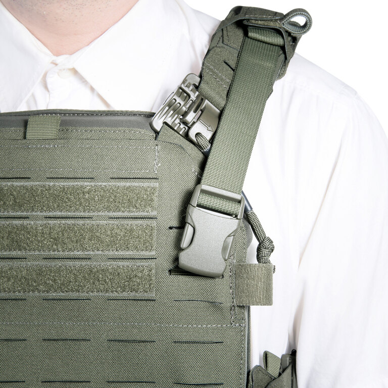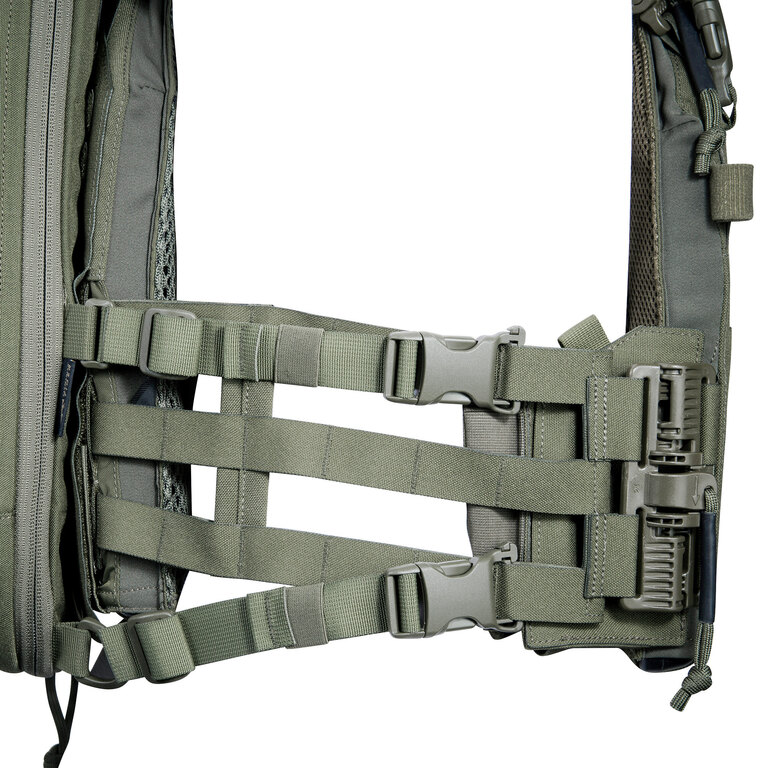 Batoh Modular Chest Rig od Tasmanian Tiger rozšiřuje možnosti chest rigu a nosiče plátů o zadní úložný prostor bez nutnosti klasického batohu. Jde o nástavbu, která se připojuje k nosnému systému a rozšiřuje jeho funkčnost. Umožňuje mít výstroj rozloženou přímo na těle, přehledně uspořádanou a okamžitě dostupnou. Navíc umožňuje vložení balistického plátu a rozšířit tak ochranu zad podle konkrétní konfigurace. Chest rig není součástí balení.