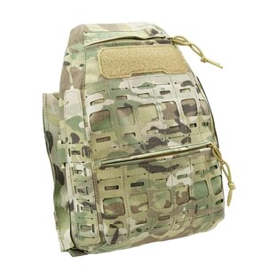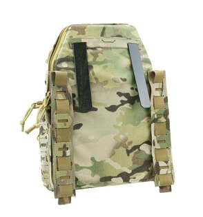 Na přední straně batohu jsou dvě kapsy na zip s prodlouženými táhly pro lepší ovládání v rukavicích. Kromě toho jsou celý předek a boky pokryté laserem řezanou MOLLE vazbou na níž lze připevnit další kapsy a příslušenství. V horní části najdete velcro panel pro ID označení. Zadní část je vyztužená polymerovým skeletem. Některé z plastových výztuh lze proplést MOLLE systémem a zlepšit tak upevnění k nosiči plátů.