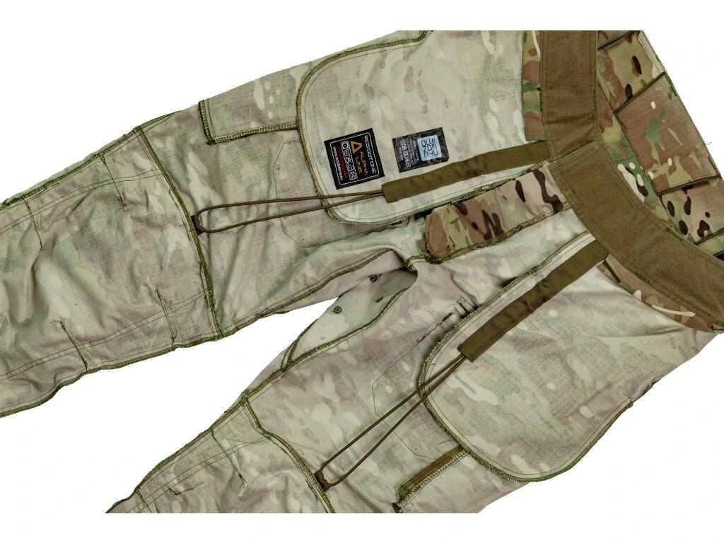Protože jsou tyto kalhoty určeny i pro bojové podmínky, muselo být při jejich vývoji myšleno především na odolnost. O té zde můžeme hovořit díky kombinaci polyesteru s bavlnou. Tento materiál je vysoce odolný vůči roztržení, prodyšný a současně rychleschnoucí. Má vysokou otěruvzdornost (40 000 Martindale test), vysokou odolnost vůči UV záření a hlavně olejofobní a hydrofobní úpravu. A také skvělou stálou barev (4/5 za sucha, 3/4 za mokra).