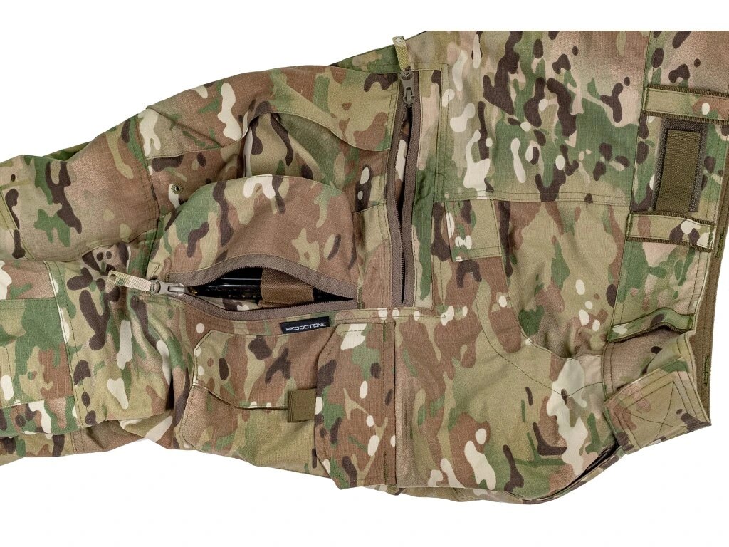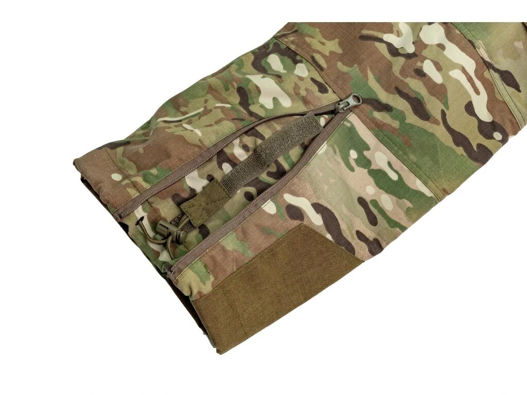 | Další specifikace | Bojové kalhoty Anatomický střih, dlouhé nohavice Upevnění vzadu Zapínání pomocí velcro (v úpravě, která neničí oblečení) Zpevněná opasková poutka Stahování pasu gumou a velro páskem Větrací otvory v rozkroku Jemná fleecová podšívka v pase Kapsy na chrániče kolen (pro všechny běžné typy včetně Crye Precision AirFlex™ Field Knee Pads) Nastavitelná šířka kolen pomocí velcro pásků vzadu Nastavitelná výška kolen (a chráničů pomocí elastických šňůrek v horních kapsách) Zpevnění spodní části nohavic na vnitřní straně Spodní část nohavic se stahuje pomocí skryté elastické šňůrky s brzdou - volný konec šňůrky zajištěn velcro proužkem, stahování je skryto pod zipem Táhla zipů uzpůsobena použití v rukavicích 2 kapsy (nejen) na ruce s otevřeným vstupem se zesílením na klip nože či svítilny a podobně 2 menší úložné stehenní kapsy kryté klopou zapínanou na velcro s možností vložení vnitřních organizérů a malých kapes, s drenážními otvory na dně 2 velké úložné kapsy na bocích zapínané na zip s extra svislým vstupem z vnitřní strany zapínaným na zip (kapsy nejsou našívané, ale vsazené) Vyrobeno v ČR |