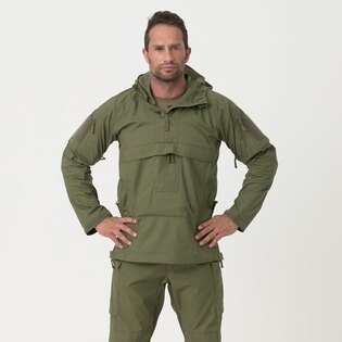 | Další specifikace | Produktová řada Helikon-Tex® Patrol line Evropský patent č. 005308384-0001 Zipy: YKK® Hardware: Woojin Plastic® Volný střih Nastavitelná kapuce Stahovací dolní lem Stahování v pase Boční větrání na obou stranách po celé délce zapínané na dvoucestný zip Kompatibilní s nízkoprofilovými chrániči loktů Velká náprsní kapsa "klokanka" s horním vstupem zapínaným na zip - se 3 vnitřními kapsami a s "D" kroužkem 2 kapsy na ruce se svislým vstupem zapínaným na zip (pod náprsní kapsou) 2 kapsy nahoře na rukávech se svislým vstupem zapínaným na zip Velcro panely na rukávových kapsách |