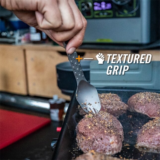 Devour Ti od Gerberu spojuje to, co v terénu dává největší smysl: jíst, vařit a čistit jedním lehkým kusem výbavy. Titanová konstrukce drží tvar i při hrubším používání a devět funkcí pokryje všechno od otevření konzervy po nabírání pořádné porce. V batohu nezabere místo a v ruce působí jistě, takže u ohniště ani na cestách nemusíte řešit náhradní příbor nebo nůž na obalové materiály. Kdo chce mít ve výbavě něco, co opravdu funguje, sáhne po Devouru Ti.