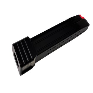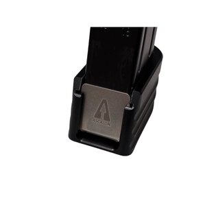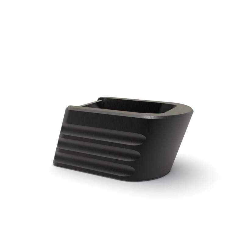 Boční strany doplňují hluboké drážky, které zlepšují kontrolu při přebíjení. Ruka neklouže ani při rychlé manipulaci nebo ve zhoršených podmínkách. Tvar navazuje na zásobník a drží přirozenou ergonomii. Při tasení i vracení zásobníku do zbraně zůstává pohyb čitelný a plynulý.
