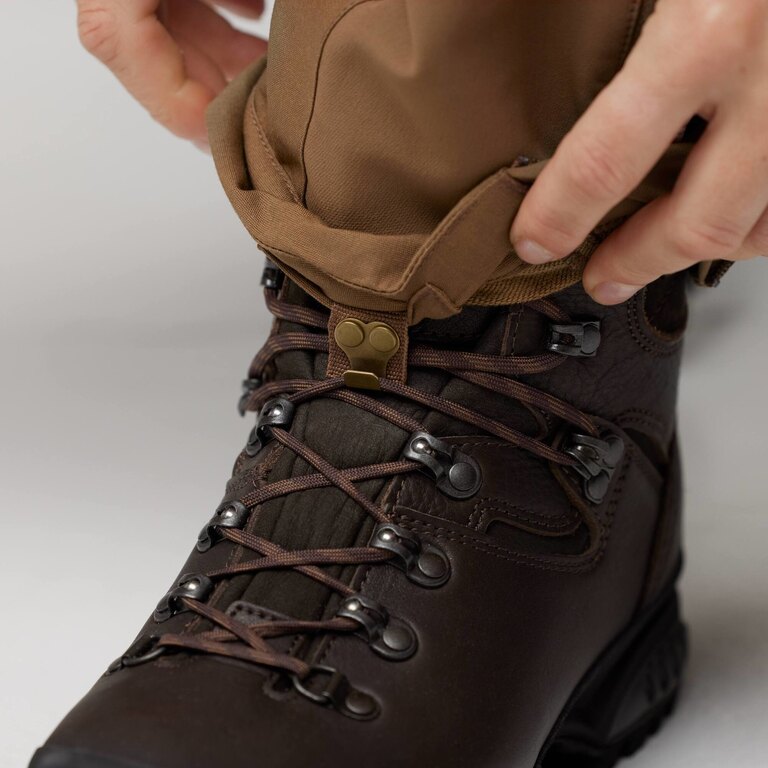 Kalhoty jsou ušité z dvojitě tkaného strečového materiálu, který je pružný všemi směry. Díky tomu neomezují při chůzi ani při náročnějších pohybech v terénu. Kolena mají anatomicky tvarované, takže sedí přirozeně a nekroutí se při nošení.