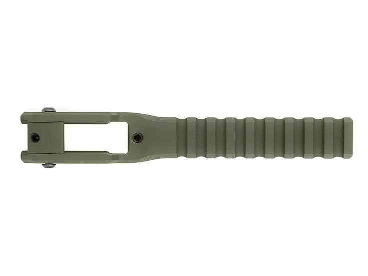 Lišta je frézovaná z jednoho kusu hliníku, což zajišťuje nízkou hmotnost a přitom vysokou odolnost. Povrchová úprava je řešená keramickým nátěrem Cerakote. Právě Cerakote patří mezi nejodolnější povrchové úpravy na světě – chrání před poškrábáním, oděrem i chemií, a proto se používá u špičkových zbraní po celém světě.