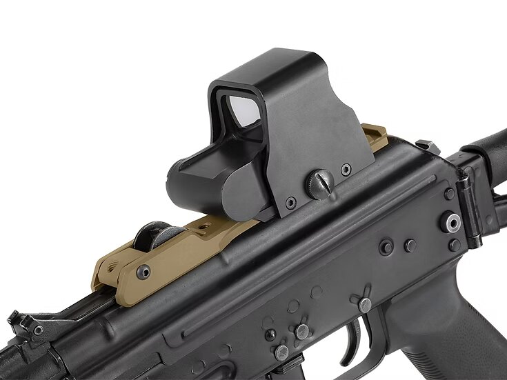 CRC 2U079 Optic Mount pro AKS-74U přináší jednoduché a spolehlivé řešení, jak doplnit AKS-74U o moderní optiku. Instaluje se bez úprav konstrukce, zachovává volný výhled přes mechanická mířidla a díky Picatinny liště nabízí prostor pro širokou škálu zaměřovačů.