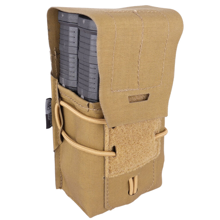 Dvojitá sumka pro zásobníky ráže .308 Templar’s Gear® pojme 2 zásobníky pro ráži .308 o kapacitě 20 ran. Najde si tak místo převážně u majitelů zbraní SR25, G3, FN FAL apod. Zapínání sumky je řešeno kvalitním suchým zipem, díky kterému máte k sumce snadný přístup a zároveň máte jistotu, že z ní zásobníky za žádných okolností nevypadnou. Kromě suchého zipu jsou pak zásobníky zajištěny ještě pružnou jistící šňůrou, která drží tvar sumky a v případě potřeby umožňuje modifikovat tvar sumky i pro uskladnění jiného než zásobníkového vybavení. Sumka je vyrobena z lehkých, ale velice odolných materiálů, takže vydrží i méně šetrné zacházení. Díky MOLLE vazbě můžete sumku připevnit k jakémukoliv vybavení nebo části výstroje, která je kompatibilní s MOLLE systémem. Skvělá volba pro všechny, kteří hledají jednoduchou, ale funkční a kvalitní sumku pro dva zásobníky.