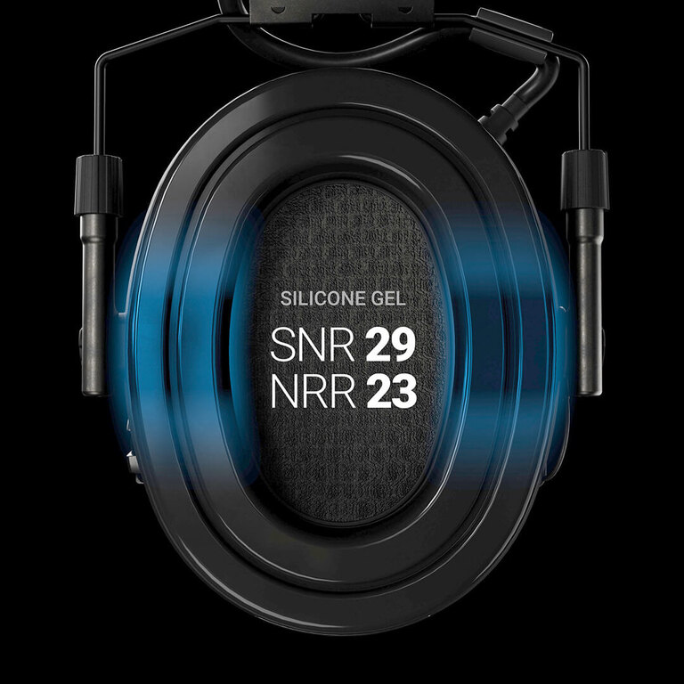 Náušníky z paměťové pěny se přizpůsobí tvaru hlavy a rovnoměrně rozloží tlak kolem uší. Sluchátka netlačí ani při dlouhém používání a udržují spolehlivé těsnění i při nošení ochranných nebo střeleckých brýlí. Komfort zůstává stabilní po celý den.