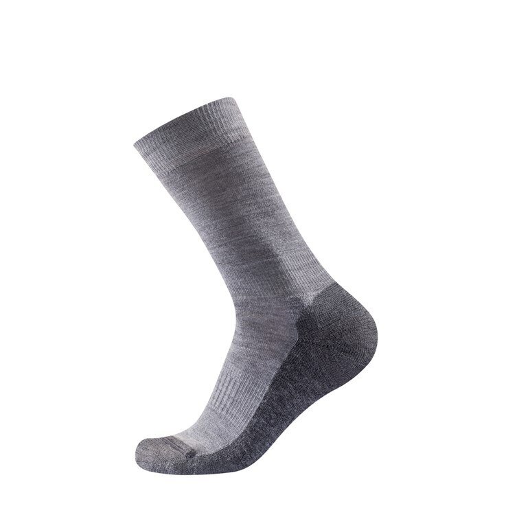 Funkční ponožky Multi Merino Medium Devold se postarají o váš pocit komfortu a udrží vaše nohy v teple a suchu. Elastické žebrování a těsný úplet zajistí stabilitu ponožky a zabrání jejímu shrnutí. Síťovaný materiál zajistí lepší prodyšnost a odvod potu od nohy. Zesílený materiál s přidáním nylonové tkaniny v místech s větším rizikem poškození, zajistí větší odolnost i elasticitu ponožek. V místě paty je přidán pro větší komfort při došlapu.