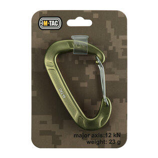 Hliníková karabina Typ2 M‑Tac® je asymetrická karabina ve tvaru D, která rychle a bezpečně připevní vaši výbavu na batoh nebo opasek. Díky lehkému, ale pevnému materiálu zvládne časté používání a odolá povětrnostním vlivům při turistice nebo outdoorových aktivitách. Umožňuje efektivní organizaci vybavení a nezatíží vaši výbavu nadbytečnou hmotností.