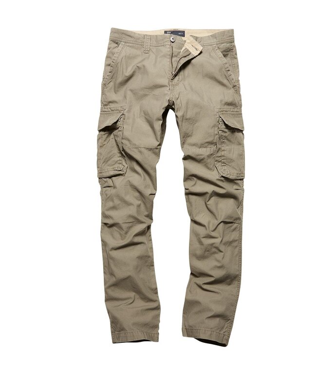 Kalhoty Reef od Vintage Industries jsou volnočasové kapsáčové kalhoty military vzhledu. Střihově jsou kalhoty volnějšího charakteru s jemně se zužujícími nohavicemi. Jistotou je, že si ve Vintage Industries dali na probarvenosti materiálu záležet a kalhoty jsou proto v čase barevně stálé bez viditelného seprání. Vintage patiny je záměrně dosaženo pomocí úpravy stonewash.