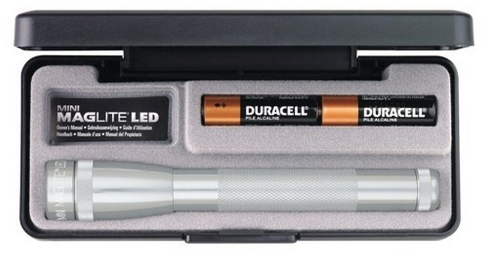 Kapesní svítilna Mini Maglite LED 2AA-cell je napájena dvěma alkalickými bateriemi typu AA (tužky) uloženými v těle pod šroubovacím víkem na konci svítilny a je osazena jednou LEDkou s dlouhou životností.