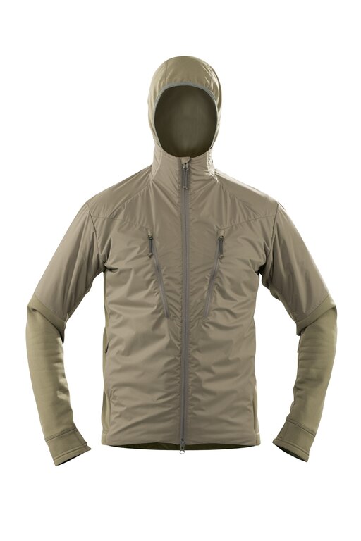 "Hybridní" bunda kombinuje 3 kvalitní materiály, které zajišťují skvělé izolační vlastnosti a efektivní odvod vlhkosti směrem od těla. Kombinace materiálů zaručuje maximální komfort a skvělou funkčnost. Vrchní vrstva je vyrobena z materiálu Pertex Microlight, který je odolný vůči větru a zajišťuje bezproblémové odpařování tělesné vlhkosti.