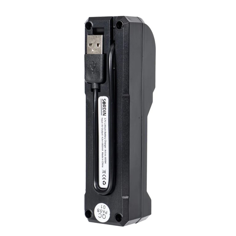 | Další specifikace | Kompaktní a lehká Bezpečná a uživatelsky přívětivá Počet nabíjecích slotů: 1 Pro dobíjecí baterie Li-ion 14500 a 18650 Sordin® Vstupní napětí: 5 V (stejnosměrné napětí - DC) Výstupní napětí (nabíjení): 4,2 V (stejnosměrné napětí - DC) Výstupní proud (nabíjení): 800 mA (stejnosměrný proud - DC) Výstupní výkon (nabíjení): 5 W Integrovaný kabel s USB konektorem typu A pro nabíjení z jakéhokoli zdroje s napětím 5 V (např. powerbanka, notebook, USB adaptér do elektrické zásuvky) |