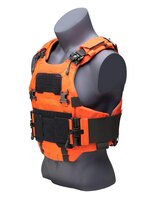 Ramenní popruhy a cummerbund umožňují přesné nastavení podle postavy, takže nosič drží stabilně i při plném zatížení. Součástí základního provedení jsou balistické ramenní polštářky pro vyšší komfort při delším nošení. Zesílené evakuační madlo slouží k rychlému vytažení zraněného. Tato varianta je navíc vybavena širokými velcro panely na zadní straně pro umístění výrazných identifikátorů, což je klíčové při zásahu záchranných složek.