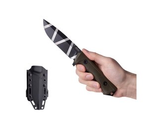 | Další specifikace | Ostří: rovné Konstrukce fulltang Jednoduchá záštita na rukojeti (prodloužená na čepeli) Tvarovaná rukojeť s texturou pro jistý a bezpečný úchop Jimping na hřbetu čepele vzadu přecházející na rukojeť umožňuje uživateli vyvinout na čepel tlak a palcem či ukazováčkem vést nůž a jimping na rukojeti vzadu umožňuje vést nůž zapřenou dlaní Rozbíječ skla na konci rukojeti Otvor na konci rukojeti na jisticí šňůru Vyrobeno v ČR |