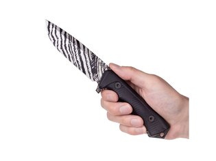 Základem nože je fulltangová konstrukce, která zajišťuje pevnost a stabilitu při náročném použití. Masivní čepel z oceli Sleipner je navržena tak, aby zvládla hrubší práci v terénu. Tloušťka čepele podporuje odolnost a jistotu při těžké práci. Celek působí robustně a je připravený na dlouhodobé používání.