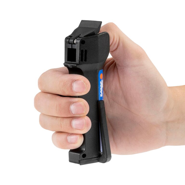Konstrukce počítá s tím, že v krizové situaci není čas přemýšlet. Intuitivní ovládání doplňuje praktická pojistka proti nechtěnému zmáčknutí. Ergonomická rukojeť dobře sedí v dlani a klip umožňuje pohodlné nošení v kapse nebo na opasku. Připravenost bez kompromisů a bez zbytečných pohybů.