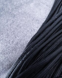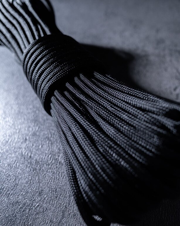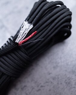 Šňůra je vyrobena ze 100% nylonu odolného vůči UV záření i vlhkosti. Zachovává pevnost, pružnost a odolnost v různých klimatických podmínkách, snadno se váže i rozvazuje a spolehlivě drží zatížení až 249 kg. Nylon je pevný, přitom dostatečně flexibilní pro všechny úkony od zajištění výstroje po improvizované lano v nouzových situacích, a vydrží dlouhodobé používání bez oslabení.