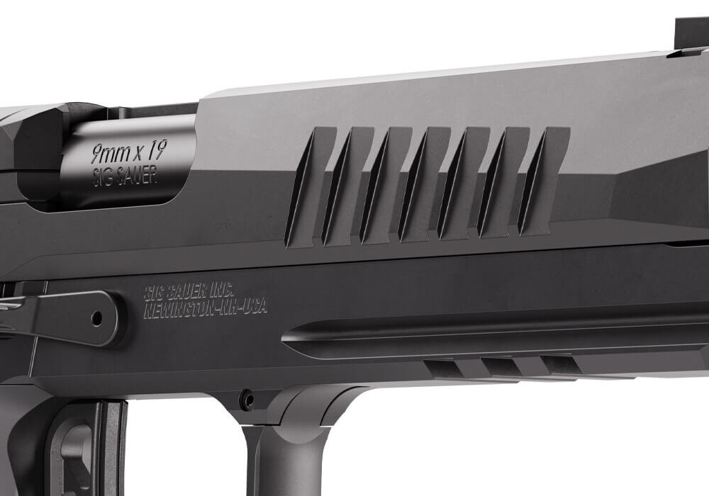 Full-size závěr je vybaven rozhraním SIG-LOC PRO pro přímou montáž moderní pistolové optiky. Agresivní serrace v duty stylu umožňují jistou manipulaci v náročných podmínkách. Konstrukce závěru odpovídá služebnímu použití i dynamickým disciplínám.