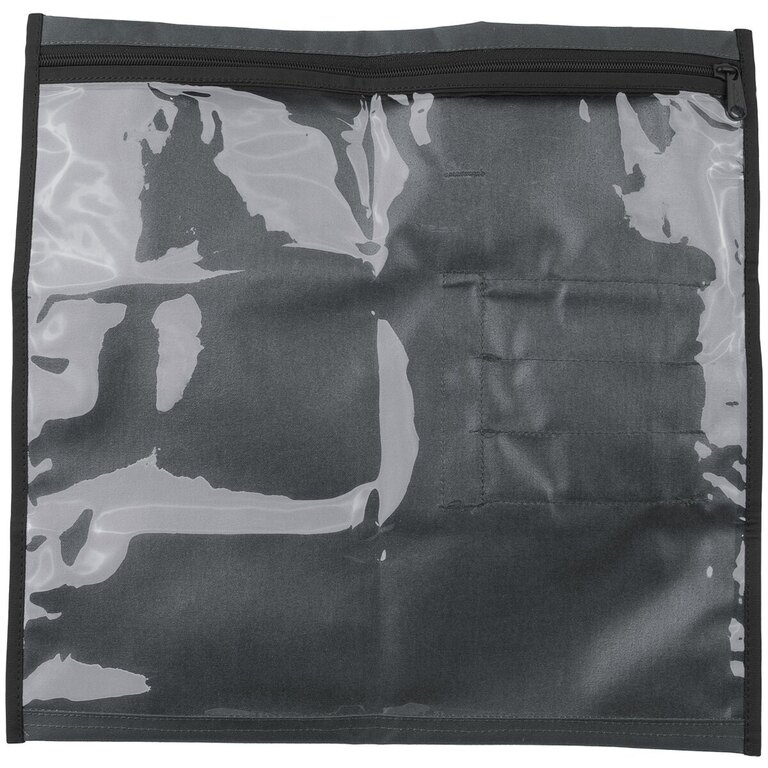 Na mapu je po rozložení pouzdra k dispozici velká kapsa s transparentní fólií. Přihrádka je zavíraná zipem. Průhledná fólie je odolná vůči extrémním teplotám od -40 °C až do 50 °C.