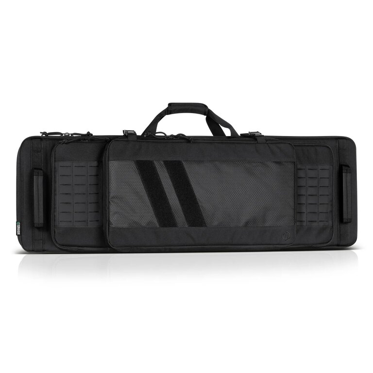 Do pouzdra Specialist se vám v provedení Double vejdou celkově dvě dlouhé zbraně. Ty ve svých přihrádkách drží na popruzích se suchým zipem. Mezi oběma přihrádkami se po celé délce nachází polstrovaná přepážka, která zbraně chrání před poškozením.