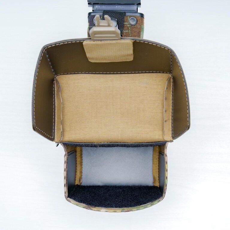 Toto pouzdro je vyrobeno z vysoce kvalitních materiálů, které odolávají náročným podmínkám a zátěži. Dostupné maskovací vzory poskytují skvělou kamufláž v různých prostředích. Konstrukce je navržena tak, aby zajišťovala maximální kompatibilitu s moderními nosnými systémy (MOLLE/PALS).