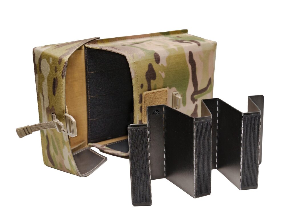 Díky rychloupínacímu mechanismu snadno získáte přístup k munici během několika sekund. Plná chlopeň navíc chrání obsah před prachem, vlhkostí a nečistotami, což zaručuje perfektní funkčnost i v těch nejtvrdších podmínkách. Kromě SAW bubnu se dovnitř vejde třeba i 6 AR/AK zásobníků (s využitím speciální přepážky) nebo i jiná výbava odpovídající velikosti.