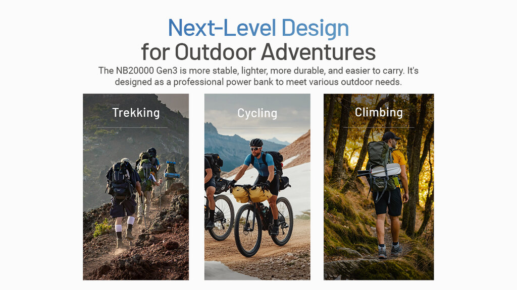 NB20000 Gen3 je o 13 % kratší než předchozí verze a váží jen 291 gramů. V kapse ji téměř necítíte, přesto má energii na víc než tři nabití telefonu. Ideální parťák, když záleží na každém gramu, ale nechcete slevit z výkonu.