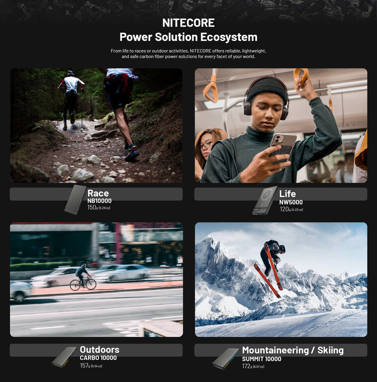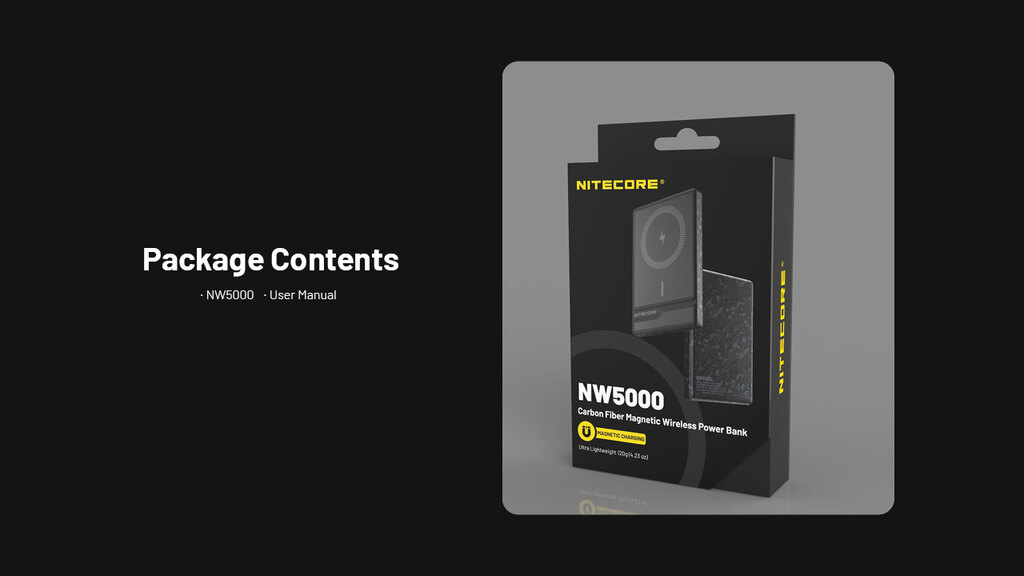 Nitecore NW5000 spojuje výkon, eleganci a praktičnost v těle z kovaného karbonu. Nabije telefon rychle, bezdrátově i přes kabel, drží magneticky jako přibitá a váží sotva víc než chytrý telefon. Ideální společník na cestách, v práci i v terénu – jednoduše energie vždy po ruce.