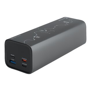 K dispozici jsou dva USB-C porty pro moderní rychlonabíjení a jeden USB-A port pro další zařízení. Powerbanka umožňuje nabíjet více zařízení současně bez výrazného omezení výkonu.