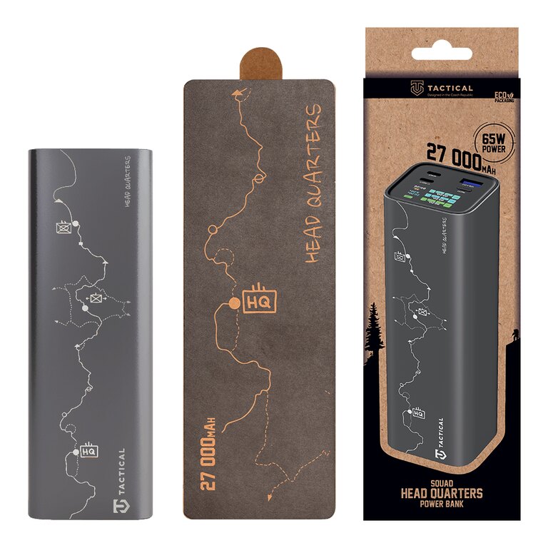Powerbanka Tactical Squad Headquarters nabízí vysoký výkon a velkou kapacitu pro spolehlivé nabíjení na cestách, v práci i v terénu. S výkonem až 65 W zvládne kromě telefonů a tabletů bez problémů dobíjet i notebooky.