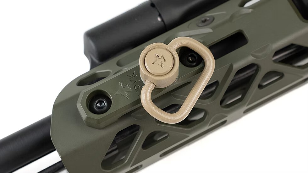 QD mechanismus umožňuje okamžité připnutí i odepnutí popruhu bez použití nářadí. Stačí jeden stisk a poutko se uvolní. Stejně rychle ho lze zacvaknout na jiný QD port na zbrani podle potřeby.