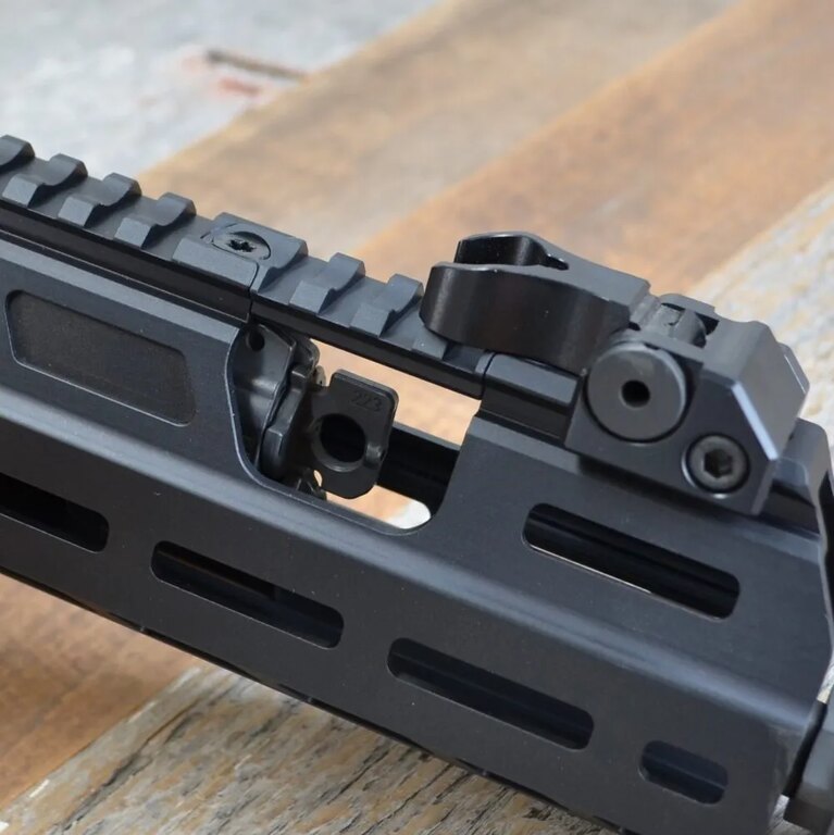 Předpažbí má na 3., 6. a 9. hodině v jedné řadě sloty Magpul M-LOK. Na 12. hodině se může předpažbí pochlubit Picatinny lištou po celé své délce. Míst pro příslušenství máte dost a rozložení slotů dává smysl při běžném nasazení doplňků. Picatinny lišta na 12. hodině drží pevně i těžší montáže bez kompromisů v usazení.