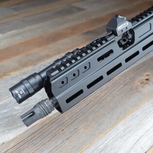 Předpažbí má na 3., 6. a 9. hodině v jedné řadě sloty Magpul M-LOK. Na 12. hodině se může předpažbí pochlubit Picatinny lištou po celé své délce. Míst pro příslušenství máte dost a rozložení slotů dává smysl při běžném nasazení doplňků. Picatinny lišta na 12. hodině drží pevně i těžší montáže bez kompromisů v usazení.