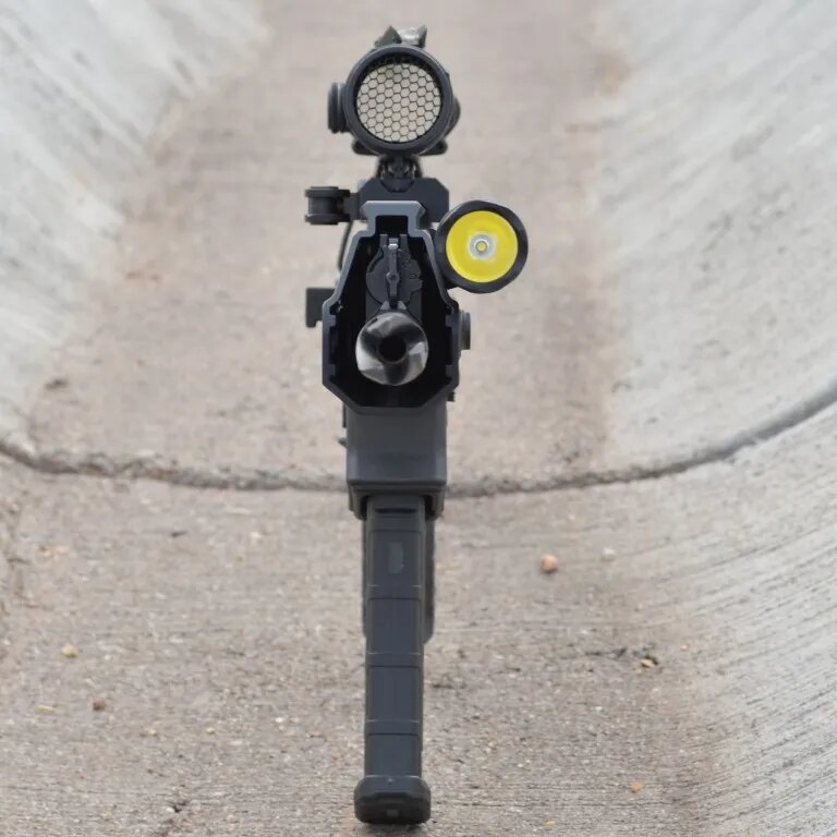 Předpažbí má na 3., 6. a 9. hodině v jedné řadě sloty Magpul M-LOK. Na 12. hodině se může předpažbí pochlubit Picatinny lištou po celé své délce. Míst pro příslušenství máte dost a rozložení slotů dává smysl při běžném nasazení doplňků. Picatinny lišta na 12. hodině drží pevně i těžší montáže bez kompromisů v usazení.