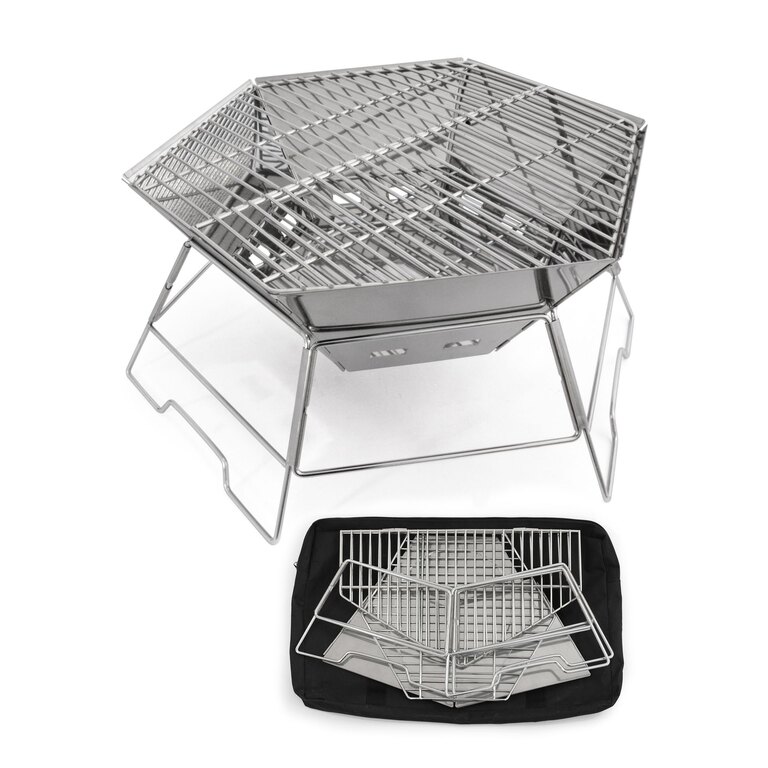 Přenosný skládací gril Hexagon Origin Outdoors nabízí velkou grilovací plochu v kompaktním skládacím provedení, které se snadno přenáší i skladuje. Šestihranný tvar pomáhá udržet stabilitu při grilování a zároveň chrání oheň před větrem. Hodí se na kempování, výlety i delší pobyt venku.