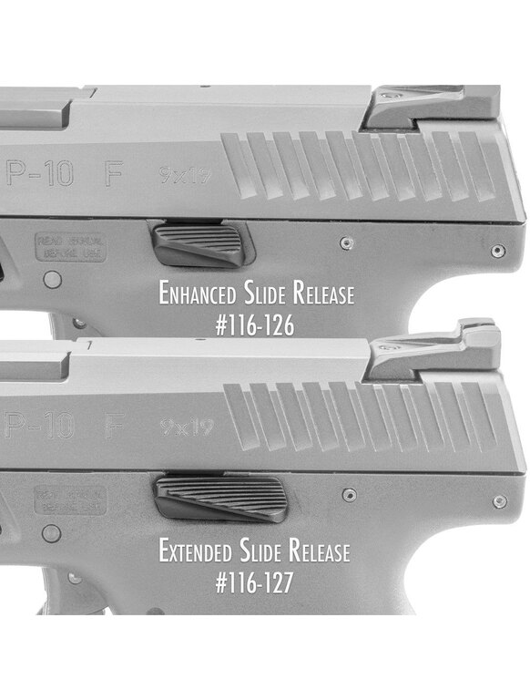 Snadnější manipulace se záchytem závěru bez zbytečných pohybů navíc. Prodloužený záchyt závěru pro CZ P-10 dává širší, ergonomické páky, které jsou posunuté směrem dozadu — lépe sednou palci a zjednoduší ovládání závěru i v napjaté situaci. Precizní opracování z oceli s černou povrchovou úpravou zaručuje dlouhou životnost.