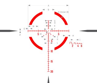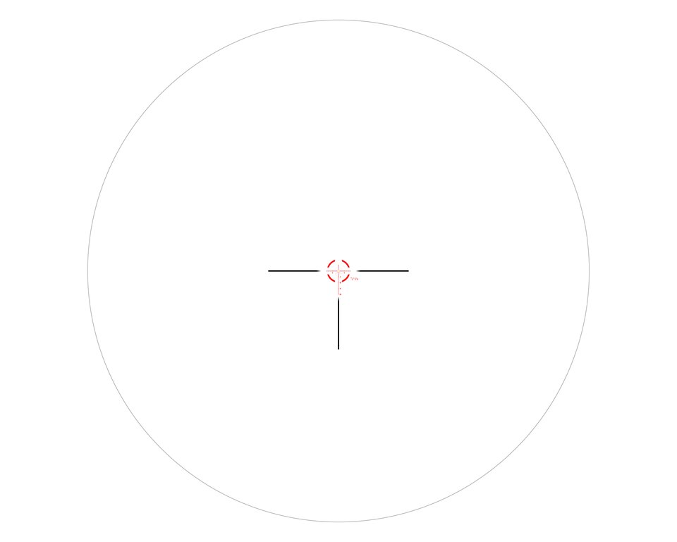 Záměrná osnova je umístěna v první fokální rovině, takže se její velikost mění se zvětšením. Balistické značky tak zůstávají přesné při každém nastavení zvětšení. Leptaná osnova ve skle nabízí přehledné značky pro korekci elevace i větru a zároveň umožňuje rychlou akvizici cíle při nízkém zvětšení.