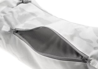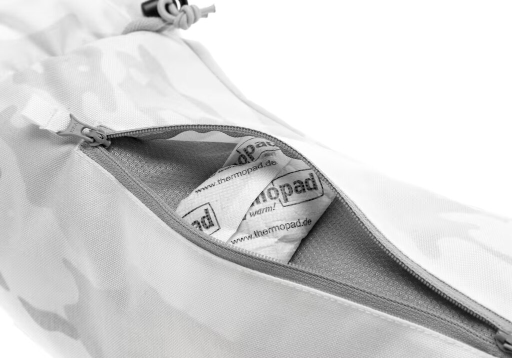 Na přední straně se nachází prostorná kapsa na zip (YKK), do které lze uložit drobnosti nebo chemické ohřívací polštářky pro ještě vyšší tepelný komfort. Zadní strana je vybavena čtyřmi MOLLE poutky, díky nimž lze ohřívač snadno připevnit k opasku, vestě nebo jiné výstroji.