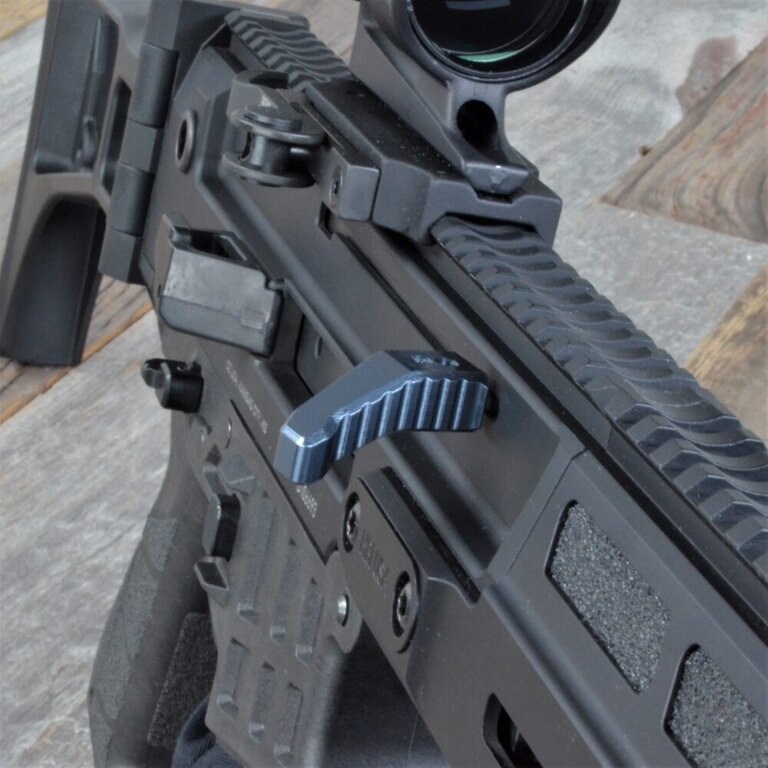Offset natahovací páka závěru CZ Bren 2 HB Industries prodlužuje celkovou délku páky, zároveň se páka zalamuje směrem dolů, aby poskytla dodatečný prostor mezi namontovanou optikou a vašimi prsty. Rovněž došlo i ke změně ergonomie natahovací páky. Všechny tyto faktory dohromady výrazně zlepší manipulaci s natahovací pákou.