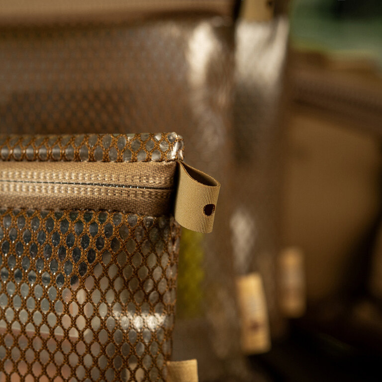 Sada obsahuje 3 kapsy velikostí S, M a L, díky kterým lze snadno třídit drobnosti podle účelu nebo priority. Menší se hodí na klíče, USB či mince, větší pojmou například doklady, nabíječky nebo hygienické potřeby. Přehledné rozvržení zkracuje čas hledání a zvyšuje efektivitu práce i pohybu. Organizéry jsou upevněny zipy YKK AquaGuard, které spolu s laminovaným materiálem chrání obsah před vodou a nepříznivým počasím.