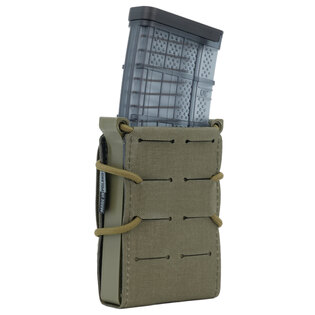Univerzální sumka na puškové zásobníky Templar´s Gear Range. Konstrukce spojená elastickou šňůrou umožňuje uschování různých druhů puškových zásobníků (AR-15, SA58, AK). Zajistí jim pevné a spolehlivé uchycení. Navíc se s ním snadno manipuluje. Zásobník stačí vložit do pouzdra. Konstrukce ho obejme a zajistí před vypadnutím. Nemusíte se tak bát ztráty zásobníku při běhu a pohybu přes překážky. Tento systém umožňuje uschování různých zásobníků, protože se pouzdro upraví podle jejich velikosti. V případě potřeby ho rychle vytáhnete, neboť vás nebudou otravovat různé chlopně a šňůrky. Sumka bude i prázdná držet tvar, protože je zpevněna polymerovým rámem.
