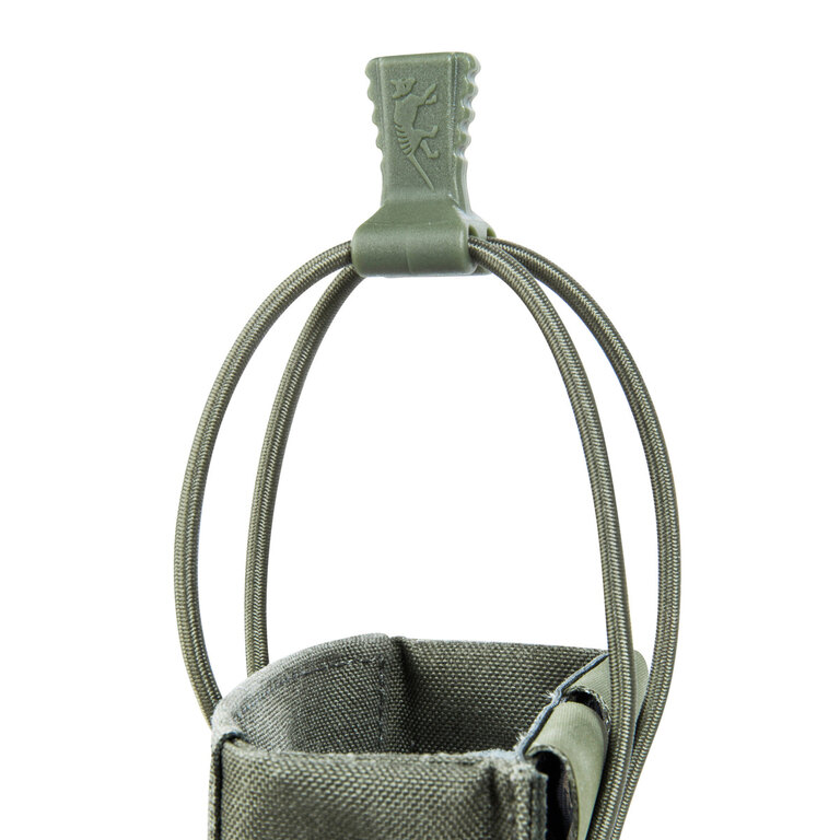 Elastická guma s ergonomickým táhlem drží zásobník bezpečně, ale pustí ho v okamžiku, kdy je potřeba jednat. Spolehlivé řešení, které nezdržuje – přesně to, co se v akci počítá.