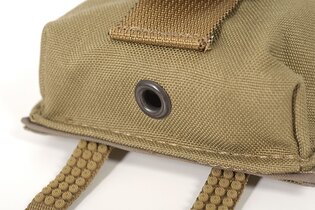 Zadní strana sumky je doplněna o modulární vazbu, díky které můžete sumku připevnit k jakémukoliv MOLLE/PALS kompatibilnímu vybavení. Sumka je vyrobena z odolných materiálů, takže vydrží i náročné bojové podmínky. Dno sumky je doplněno o otvor pro odvod vody.